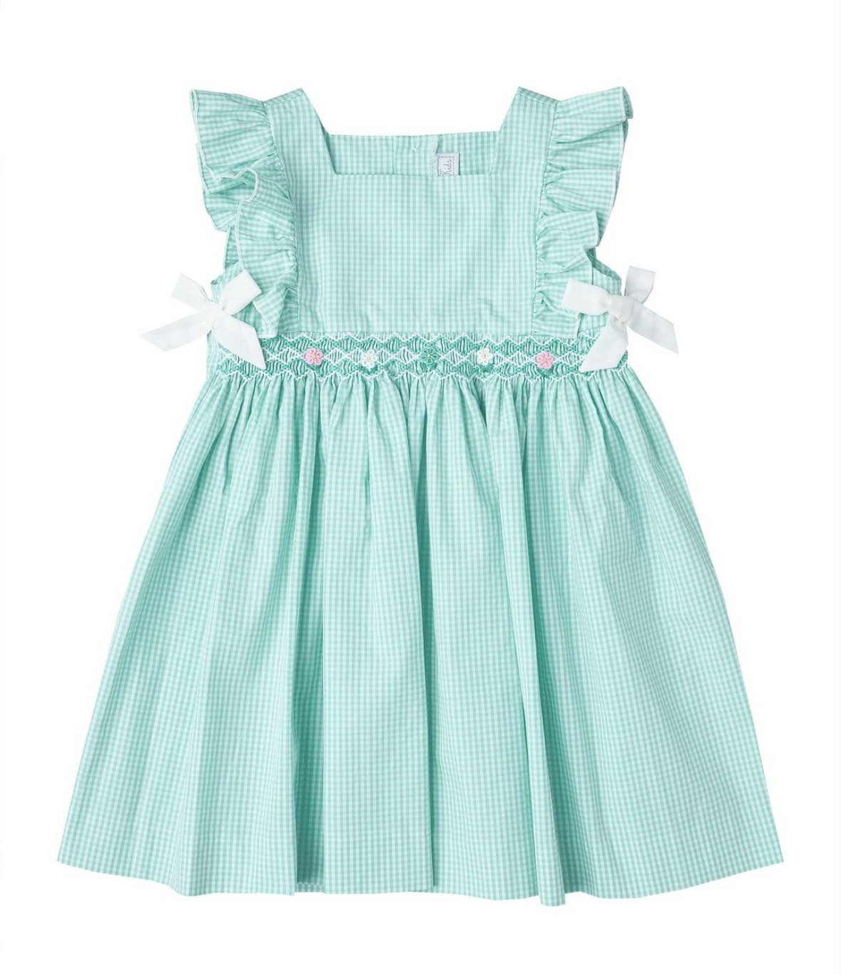 With its fresh pastel tone and timeless smocking details, this dress is both elegant and playful — a perfect addition to any Easter wardrobe.