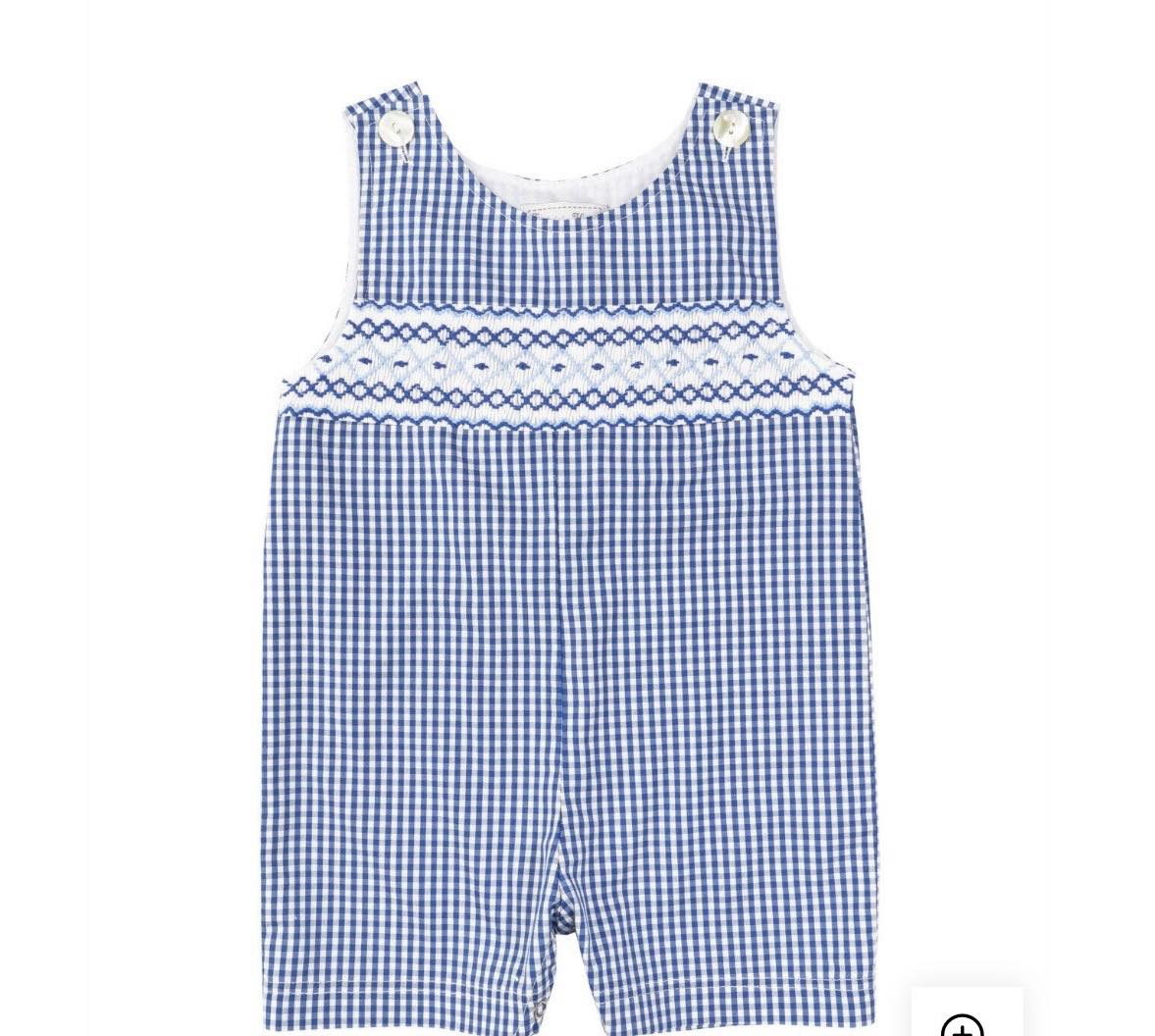 Designed in a classic navy and white gingham pattern, this sleeveless romper features beautifully hand-smocked embroidery across the chest, adding texture and heirloom charm. The clean silhouette and tailored fit create a timeless Southern-inspired style that never goes out of fashion.